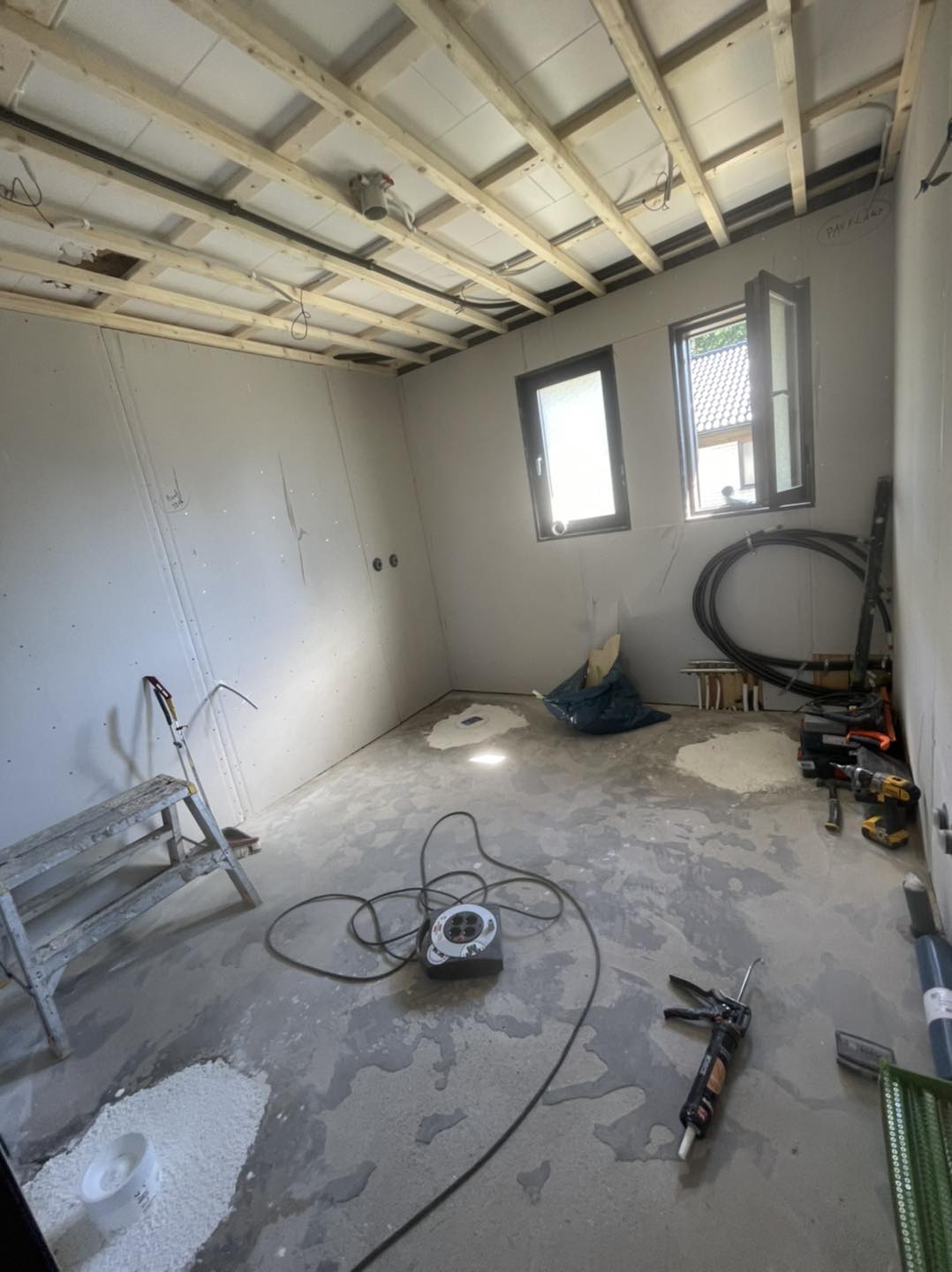 Byggnation av våtrum, badrum, dusch och kök.